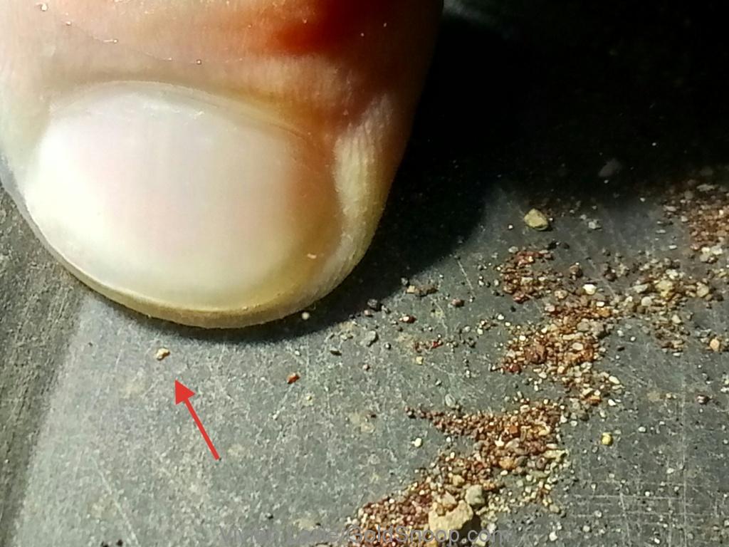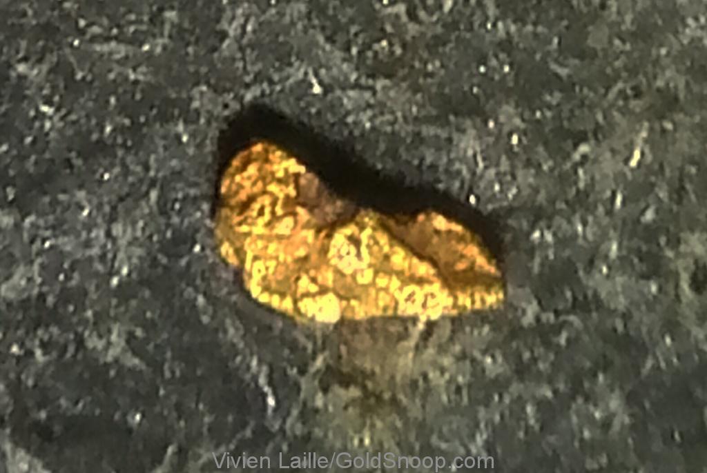 Le trou dans le conglomérat a été l’endroit le plus aurifère, démontrant le plus de paillettes.