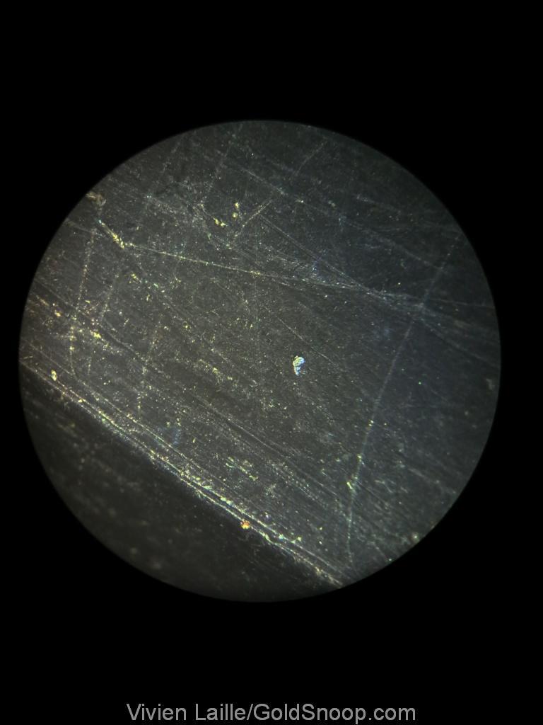 Là encore des belles paillettes ont été trouvées, avec la présence d’un magnifique grain d’or de 2 mm de long, une belle trouvaille, faite par l’Orpailleuse Mystère! Félicitation!