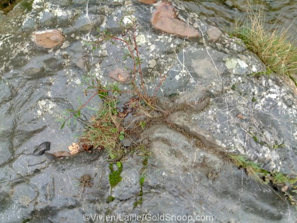 Aussi, il faut noter la présence de touffes d’herbes sur ce bedrock, autant de pièges à or potentiels.