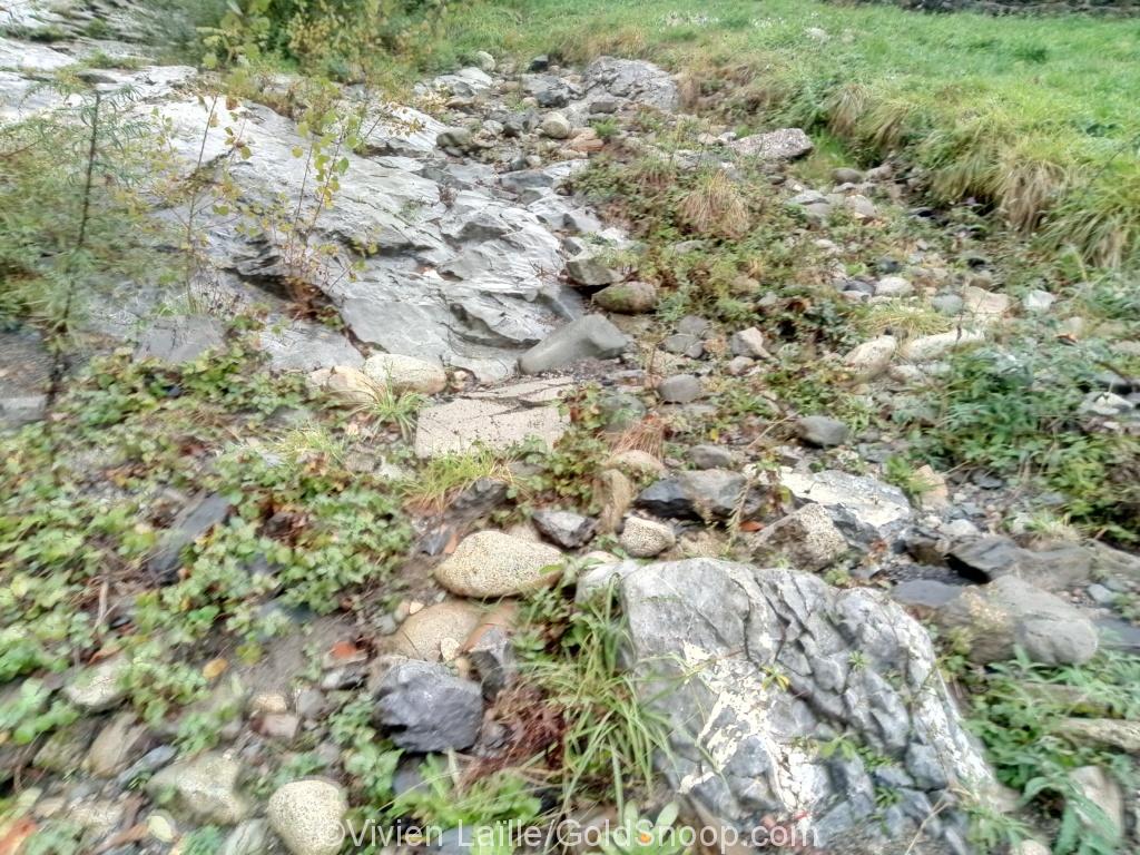 A première vue, cet endroit semble être un petit paradis pour chercheurs d’or, en tout cas c’est un très bon cas d’école, car il présente beaucoup de cas de figures que l’on peut retrouver dans des cours théoriques d’orpaillage.