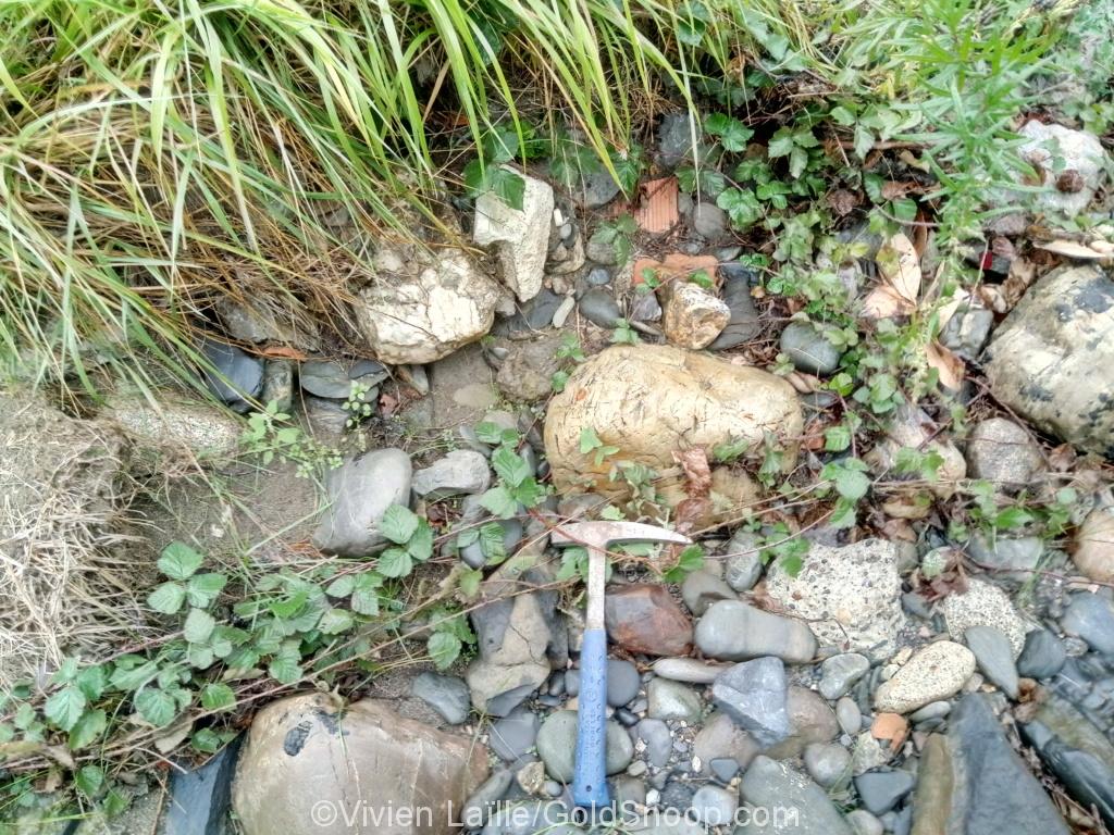 Aujourd’hui, ce dimanche 20 octobre 2019, marquera pour nous la fin de la saison d’orpaillage en rivière ; cet hiver, nous nous concentrerons sur des tests de concassages de rochers, l’étude de rochers, et aussi des essais de prospections en affleurement, loin des rivières et des poissons.
