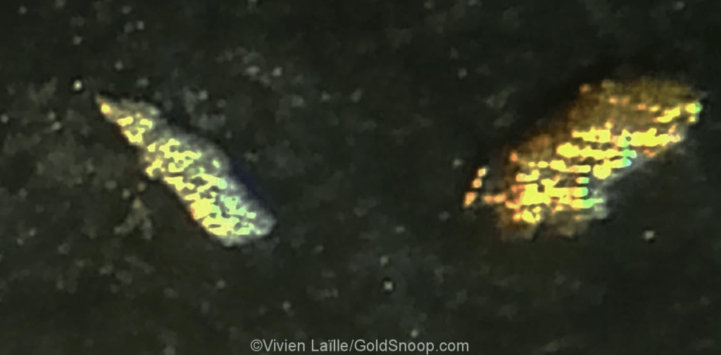 Ci-dessous: des belles paillettes d’or alluvionnaire détritique du Couserans, en Ariège.