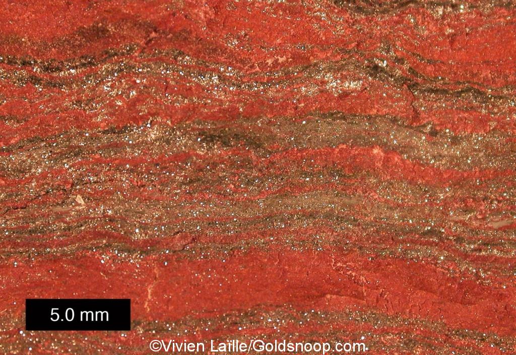 Ces précipitations, qui reflètent ici des bouffées de conditions oxydantes, alternent avec des dépôts de schiste argileux et de carbonates siliceux, qui sont eux de couleur rougeâtre et sont déposés en milieu plus réducteur.
