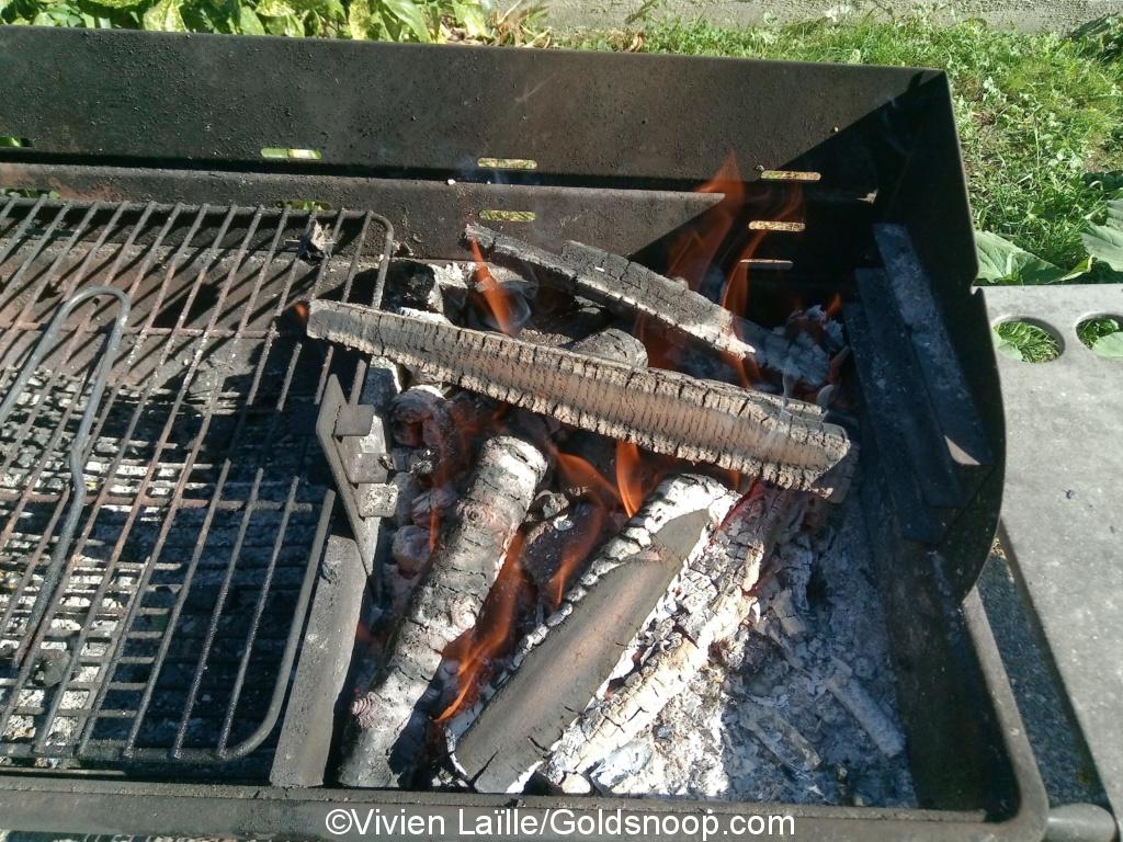 - Préparation d’un feu de bois dans un vieux barbecue ou dans un foyer existant, en extérieur,
