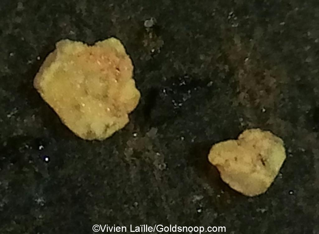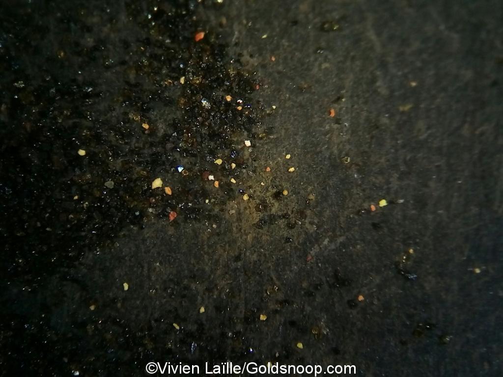 Ayant bien pris mon temps pour ausculter les concentrés, je n’ai pas trouvé la moindre trace de paillettes ou de grains d’or, dans les échantillons étudiés.