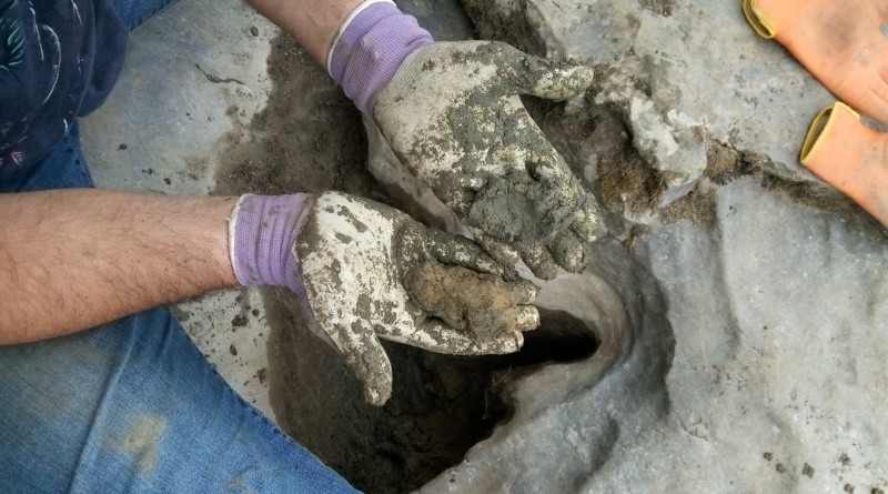 De l’or dans des glaises aurifères gluantes du fond d’une marmite