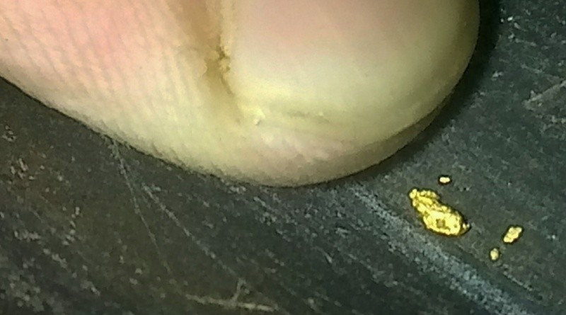 Placier aurifère de crues d’eau, avec hématites, et des paillettes d’or